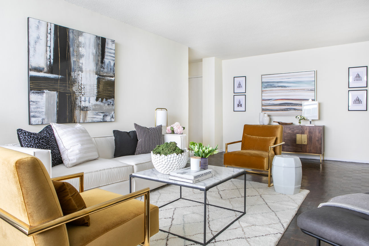 End-to-end windows and tall ceilings provide ample natural light in each suite.