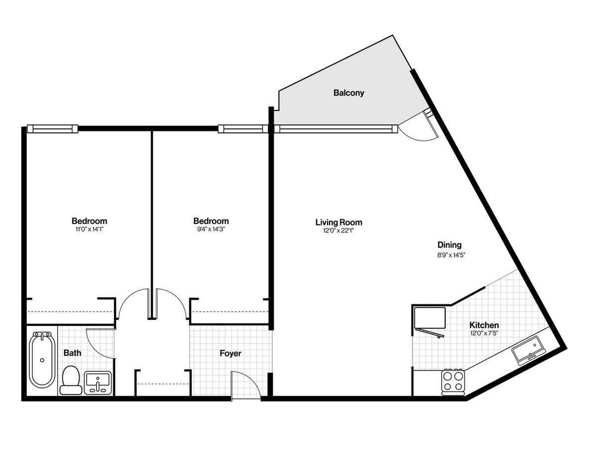 The spacious living room and dining area are amongst the highlights of this suite. Perfect for a couple wanting a guest bedroom, or a small family, there are two bedrooms, 1 full bathroom, a walk-in kitchen and ample closet space throughout the unit. A balcony extends from the living room with great views of the area.